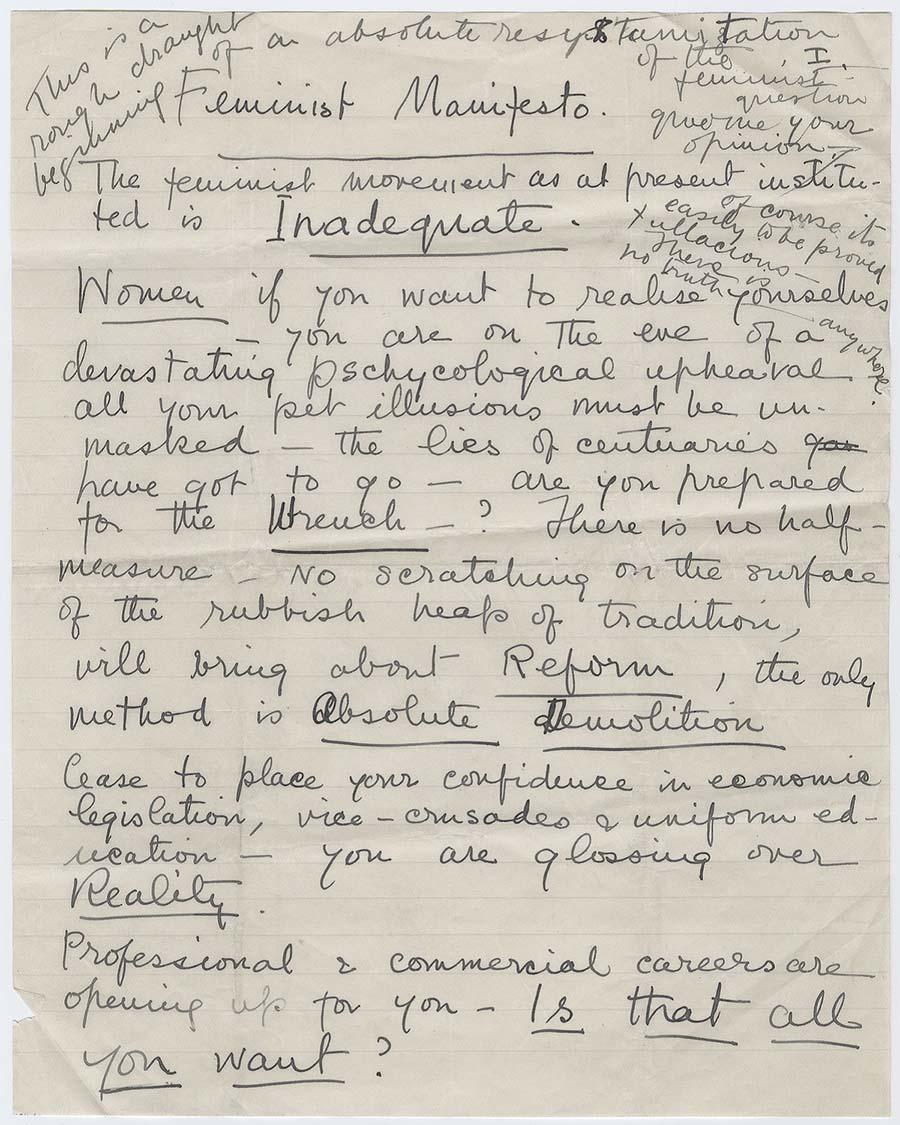 Loy, Mina. “The Feminist Manifesto.” November 15, 1914. Mabel Dodge Luhan Papers. Box 62, folder 1658. Yale University, Beinecke Library Collection.