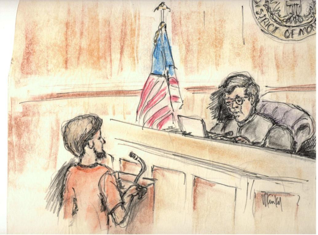 The day after the arrest, Shors asked Klinkel if he could sketch Kaczynski in court because cameras were not allowed in the courtroom. Although he hadn’t done any people sketches since college about 20 years prior, Klinkel found some old colored charcoal and notepads buried in his desk and headed to the courthouse.