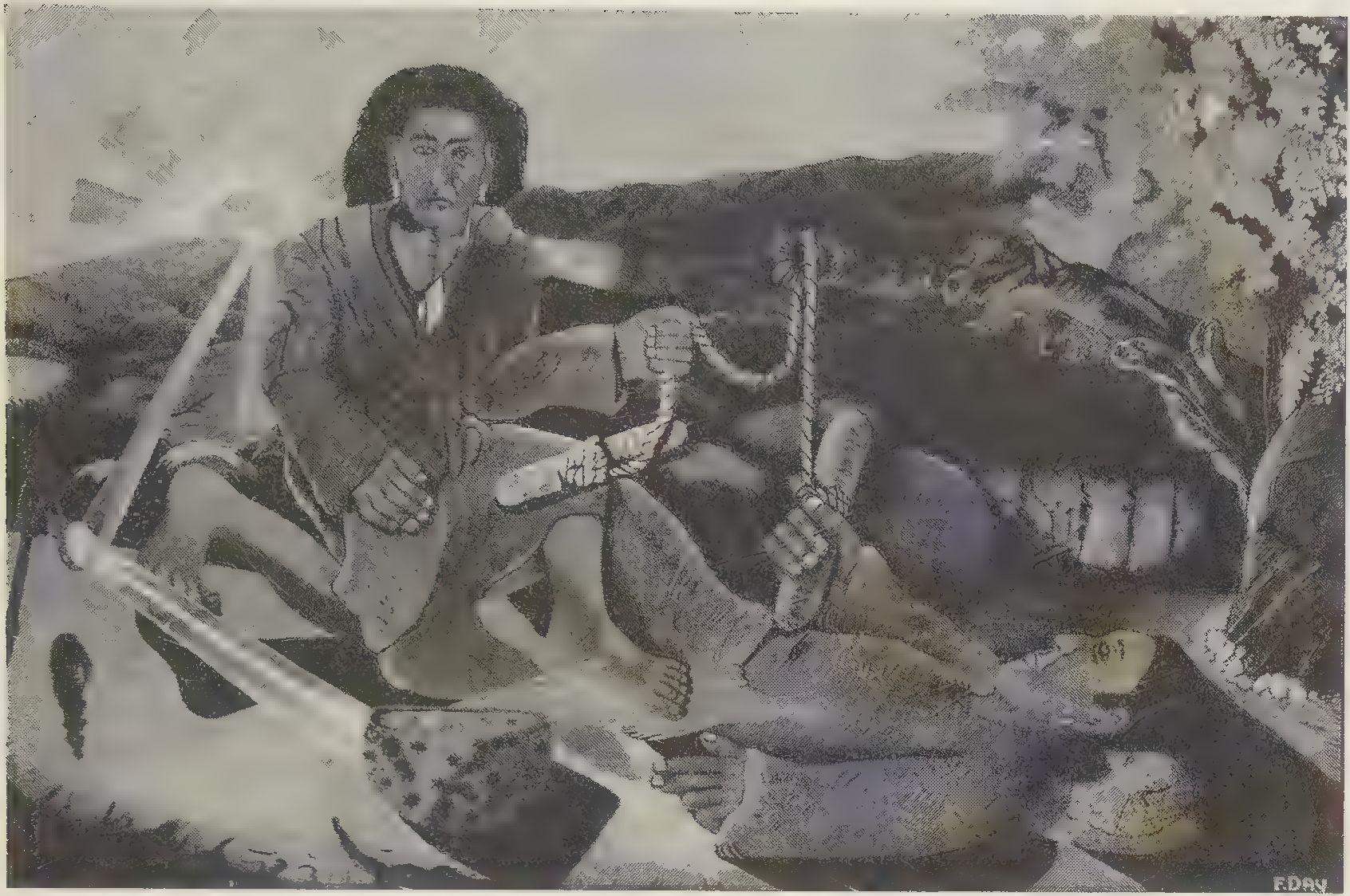[198] Anthropologist Donald Jewell and his student Lyle Scott in the 1960s and art trader Herbert Puffer in the 1970s had the foresight to record Frank Day’s interpretations of his paintings. Without their efforts, Day’s images would be difficult to decode. A more complete account of Frank Day’s life and art can be found in Rebecca J. Dobkins, Memory and Imagination: The Legacy ofMaidu Indian Artist Frank Day (Oakland: Oakland Museum of California, 1997).