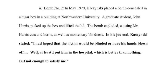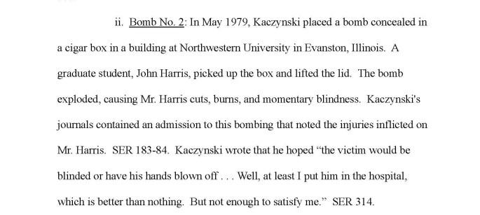 Final Brief U.S. v. Theodore John Kaczynski, appellant; No. 99-16531 in the United States Court of Appeals for the Ninth Circuit; February 11, 2000, page 8 (NAID 236736863)