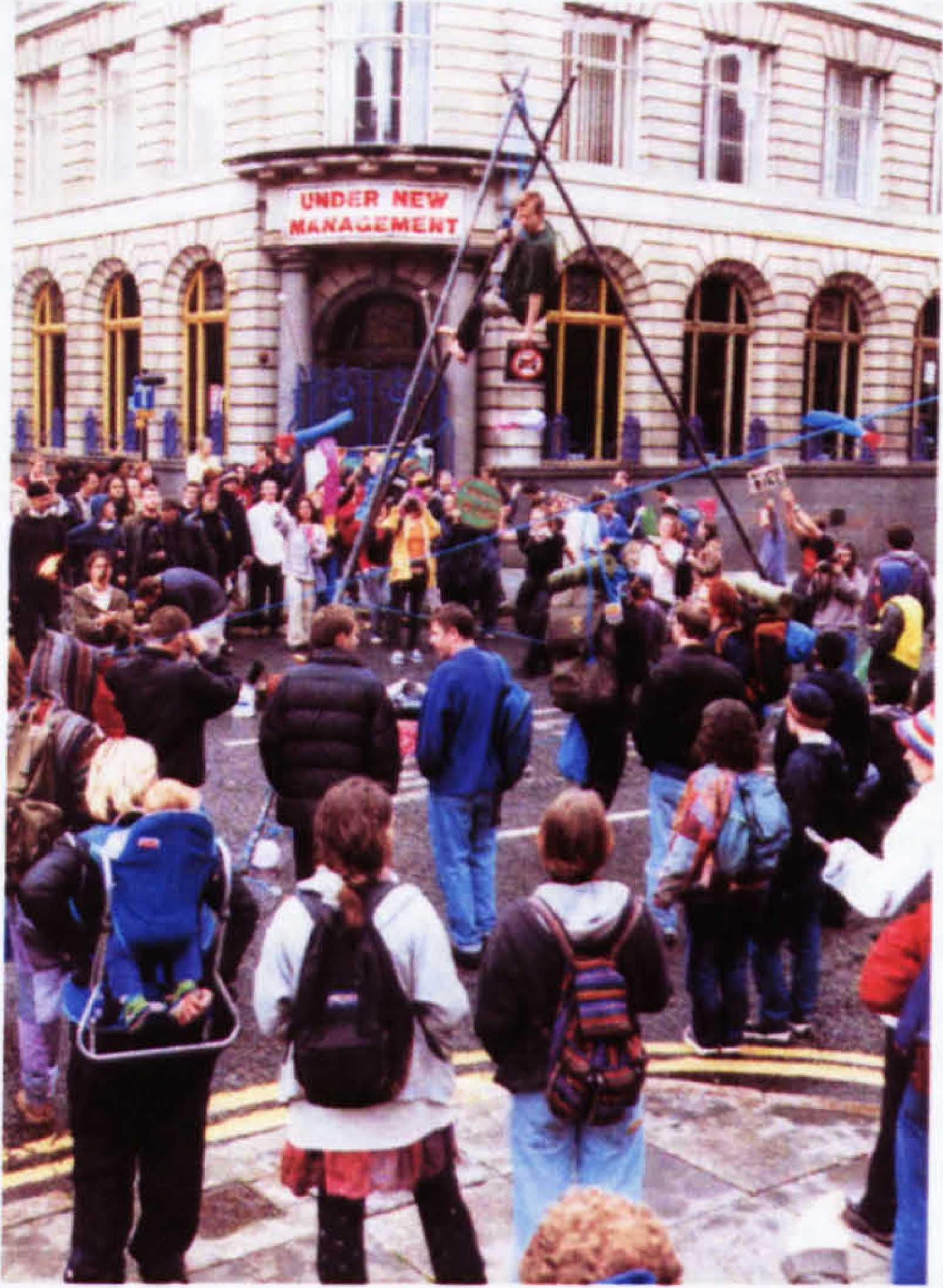 [137] In the view of the Anarchist Federation’s newsletter, for example, the violence that took place on June 18* was an achievement to be celebrated on the grounds that “While world leaders were plotting our fates they lost control of the city and some of London’s coppers got the kicking they deserve. Damage to the city was put at over 5,000,000 pounds - a good days work... It was class anger versus riot armour... This anti-capitalist demonstration showed us setting the agenda on their turf* (AF 1999c: 1). JI 8 is an interesting case, in that it may be seen as an event where the two modes - riot and NVDA - temporarily joined, but in 7.51 argue for their incompatibility.