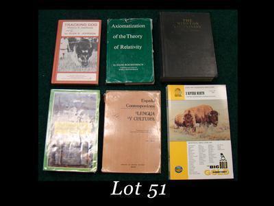 Other lots include a well-worn Bible, a manual for wilderness survival, and various battered paperbacks mostly concerned with history and science, though there's also a collection of O. Henry stories, a copy of The Last of the Mohicans, and The Elizabethan World Picture.