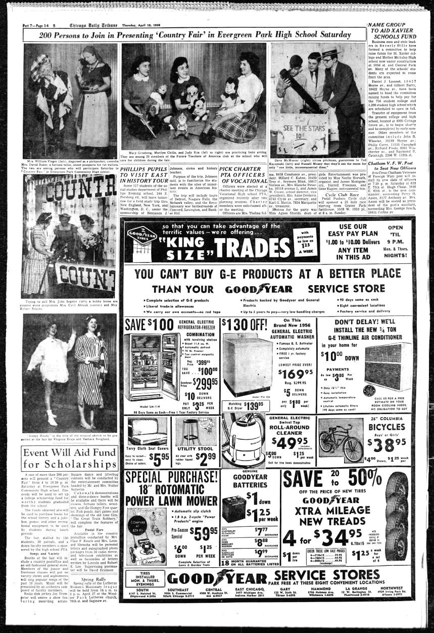[1] Chicago Tribune (Chicago, Illinois), 19 Apr 1956, page 14. <www.newspapers.com>