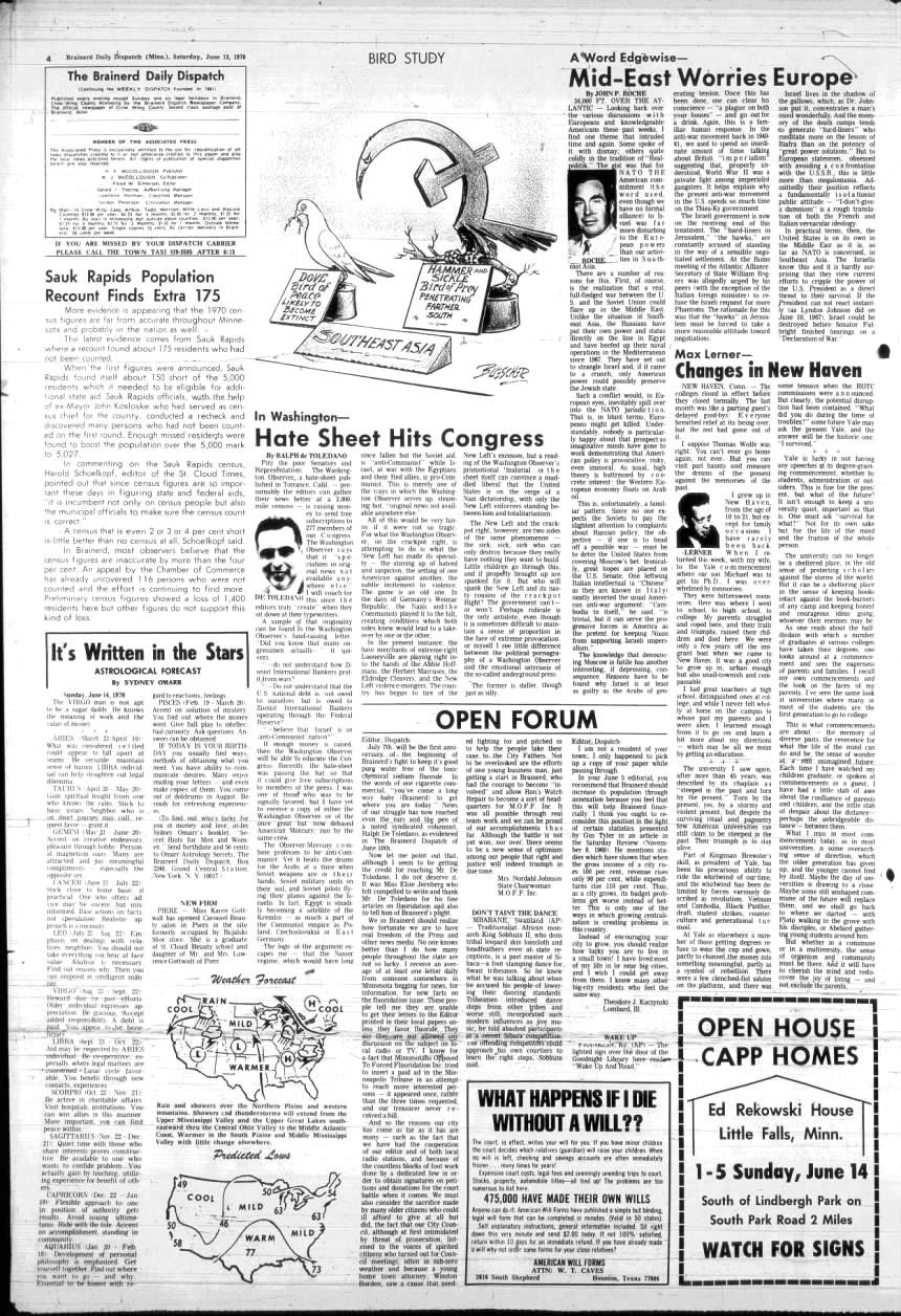 [6] Brainerd Dispatch (Brainerd, Minnesota), 13 Jun 1970, page 4. <www.newspapers.com>
