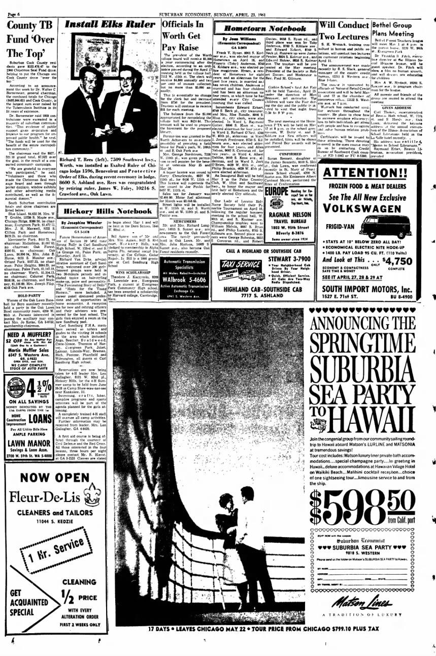 [4] Suburbanite Economist (Chicago, Illinois), 23 Apr 1961, page 13. <www.newspapers.com>